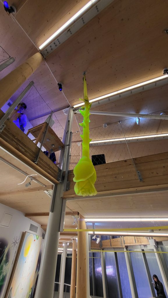 壁側に展示された作品を見ながら、らせん状の通路をぐるぐると屋上まで歩いて行く。