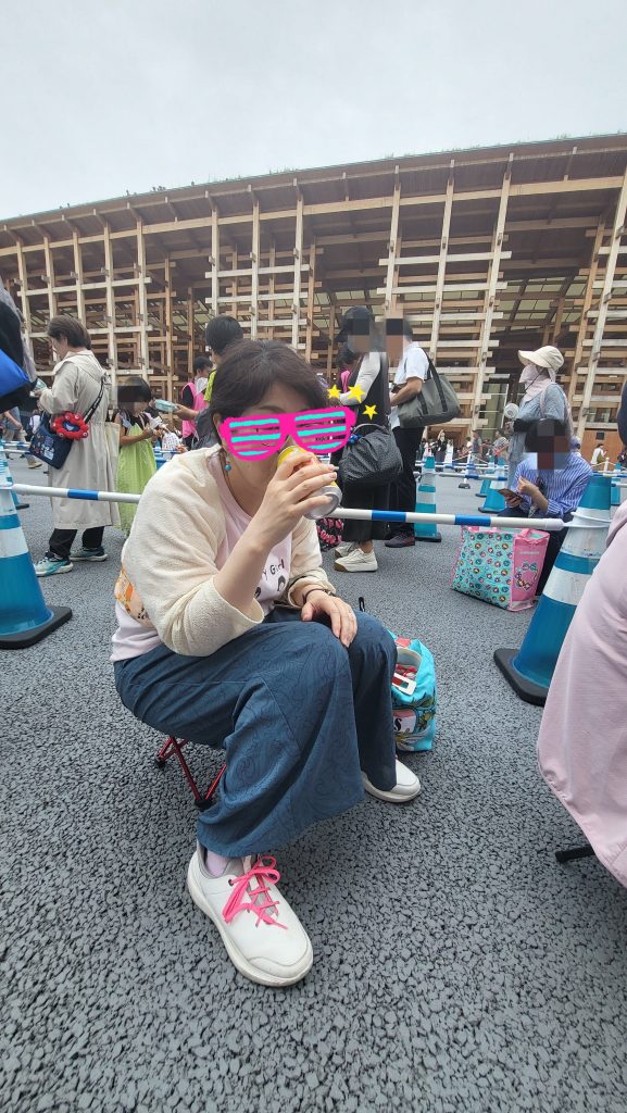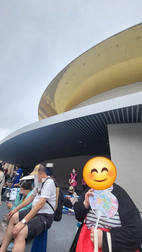 「あそこならすぐ入れそう。はい、そこに立って!」と、万博マスター・ぴろぴろさんが連れてってくれたのは